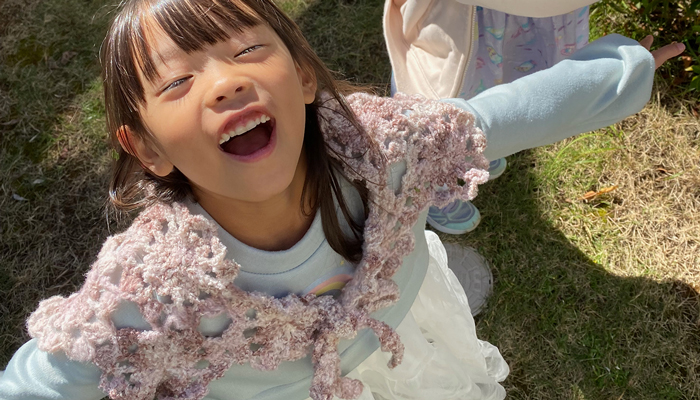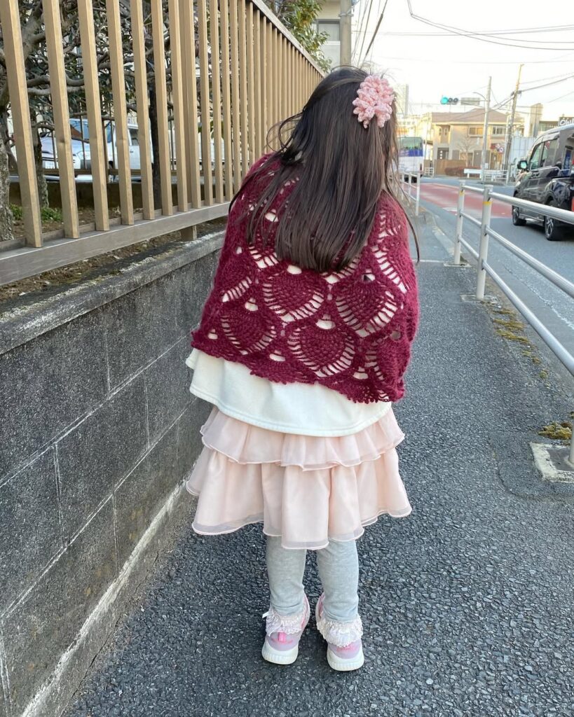 手編みのポンチョが完成して、親子で愛用しています。