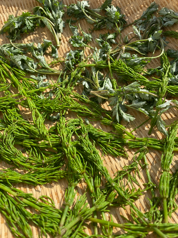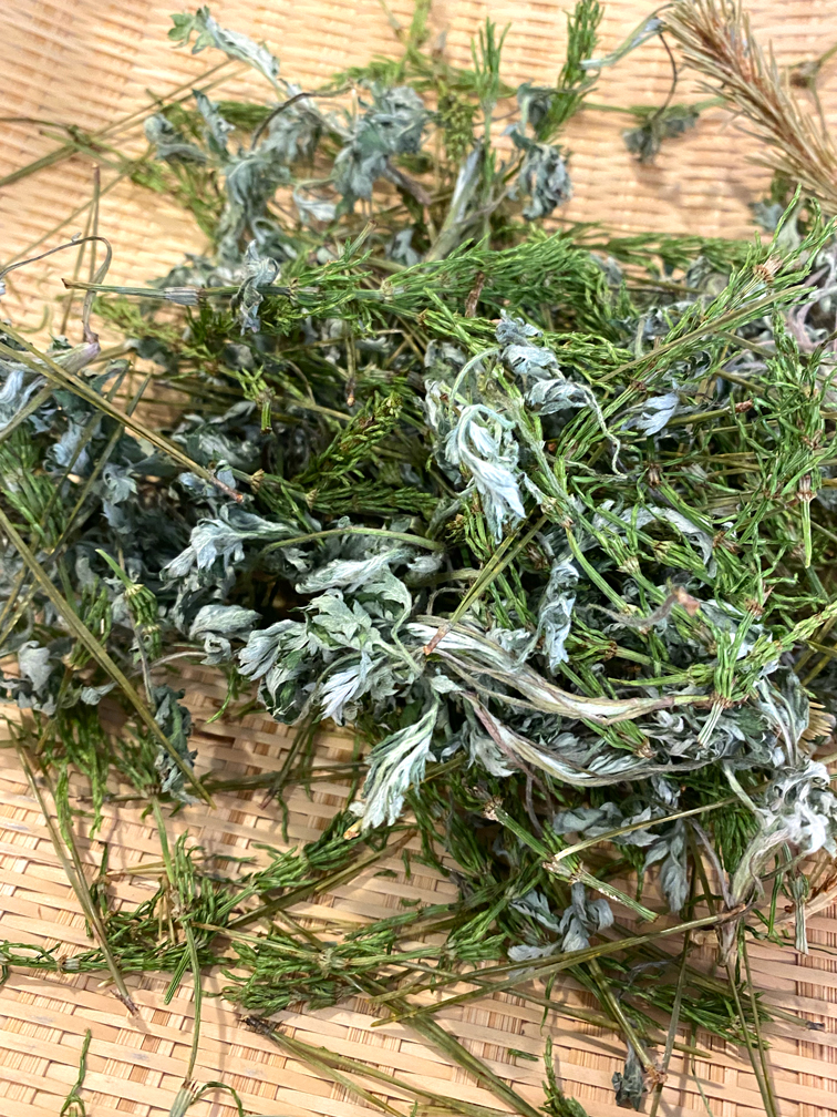 野草の香りが立ち上って来たところで完成です。 - 冷めたら容器に移して保存