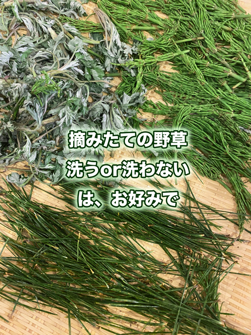 「ニラ醤油」のニラを、ヨモギとスギナに変えただけの、