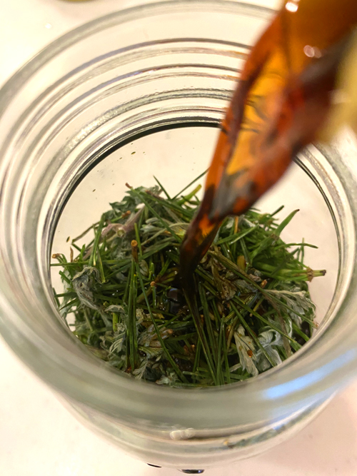 POINTお醤油は野草がひたひたに浸るほど注ぎ入れること。