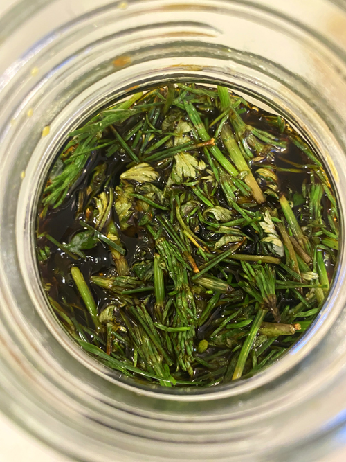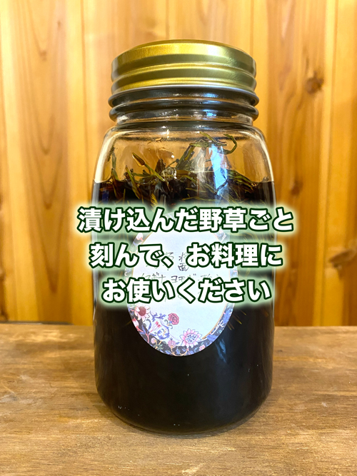 - 漬け込んだ野草ごと刻んで、いろんな料理に使えます