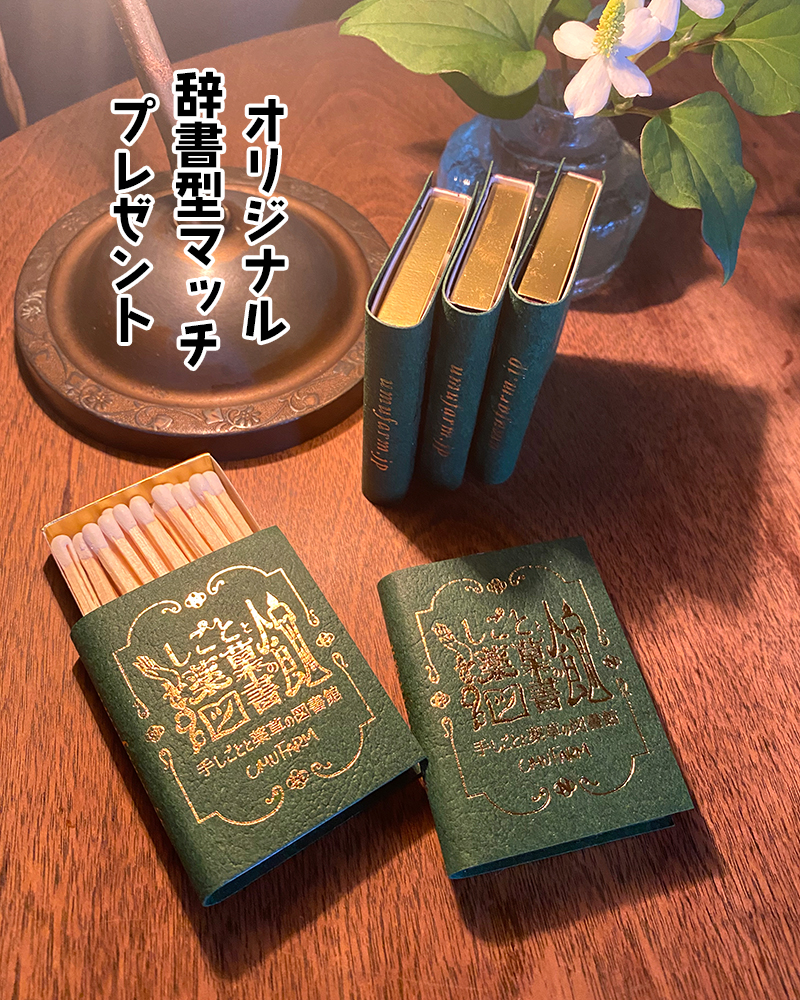 和ろうそくの灯りを、マッチで灯してほしいから、オリジナル辞書型マッチを製作しました。