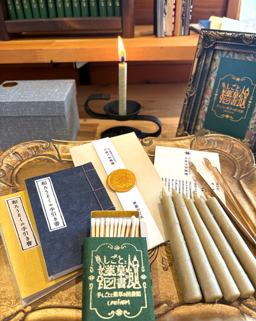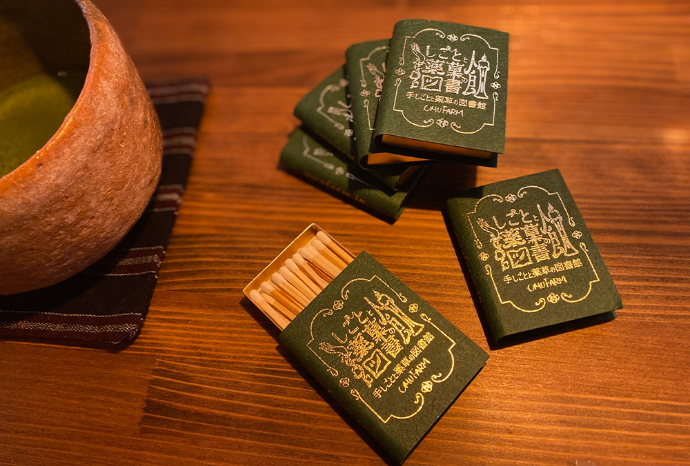手しごとと図書館のロゴ入りオリジナルマッチです。