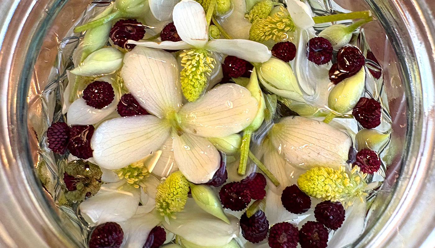 ハッカ、ヘビイチゴ、ドクダミの花を