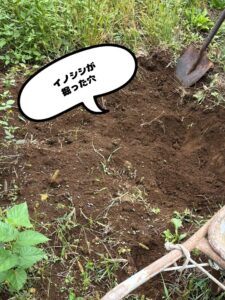 畑の脇に、ちょうどイノシシが荒らして