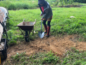 田んぼの畦道を補修するために