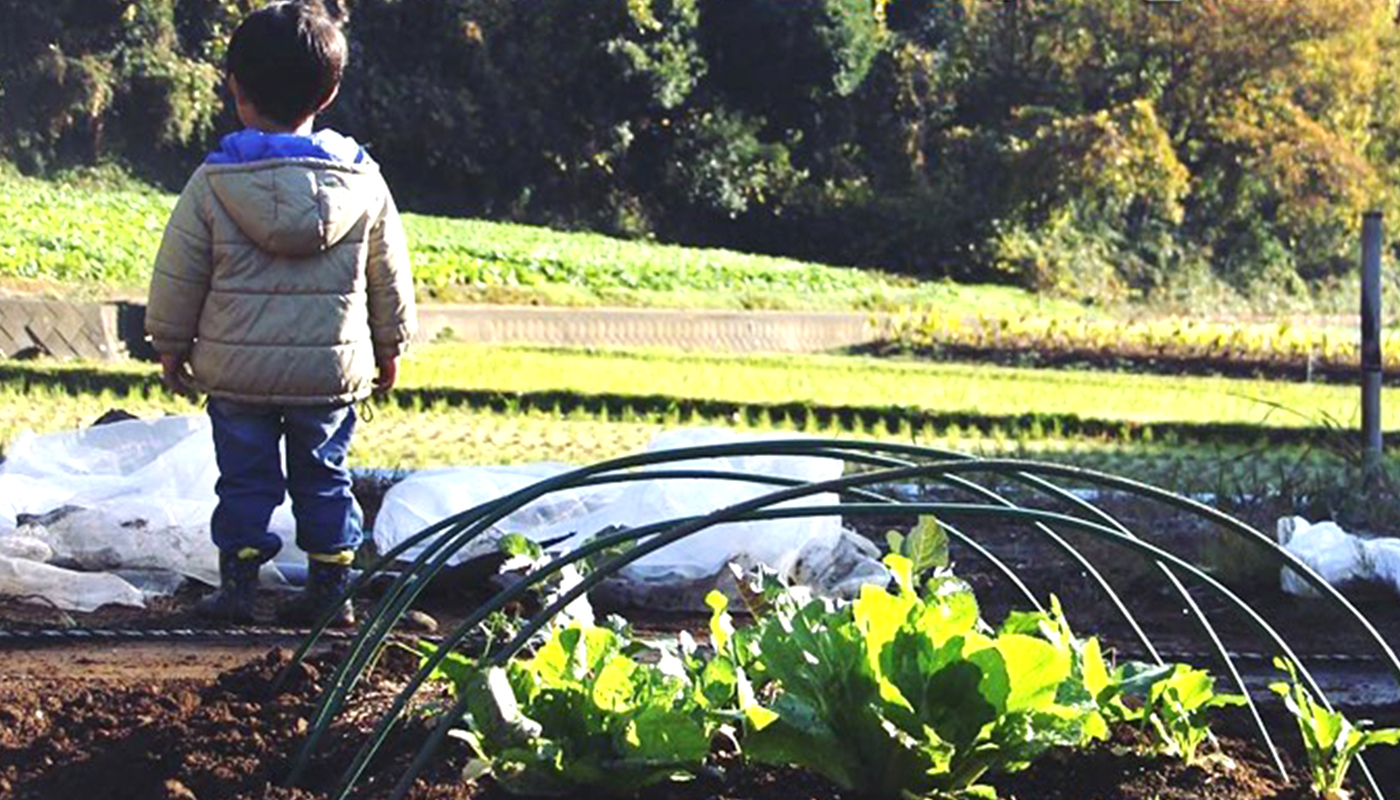 「庭で植物と遊んでる」