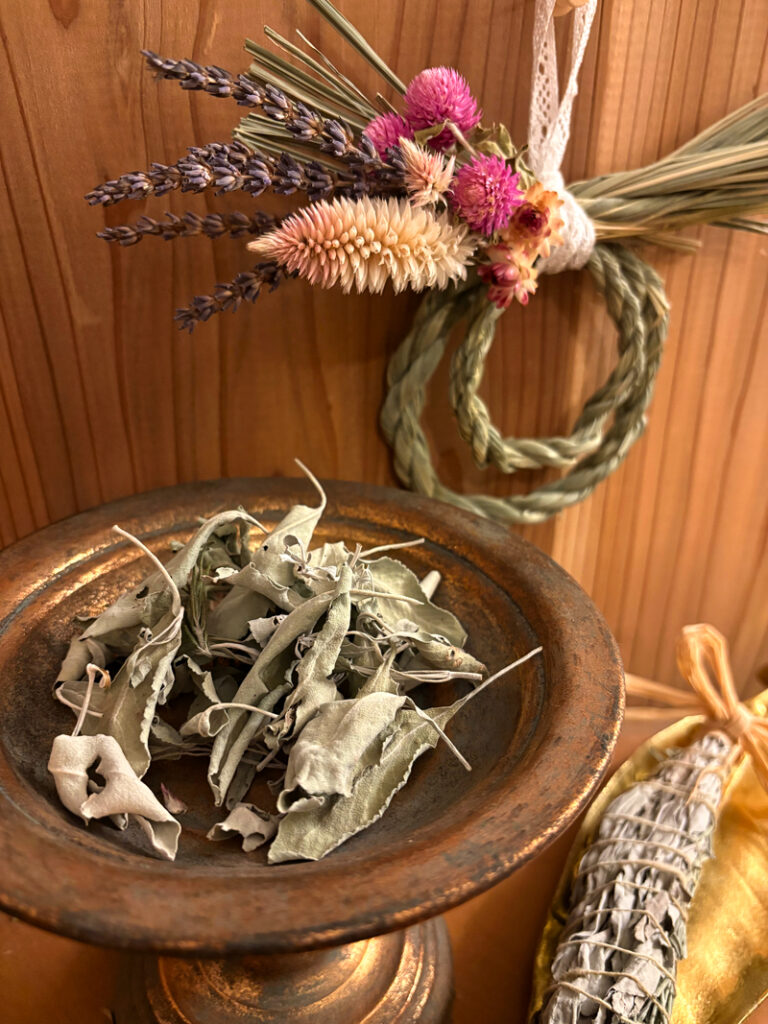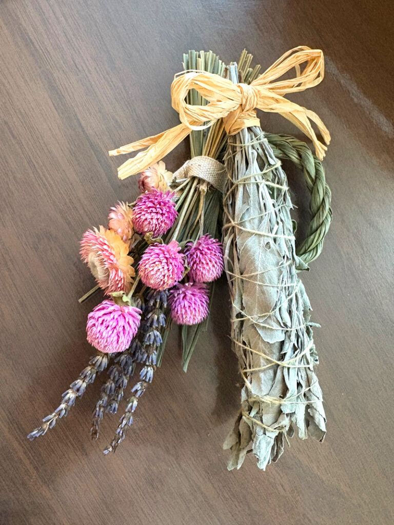庭のハーブで作ったスマッジングにも使用できる